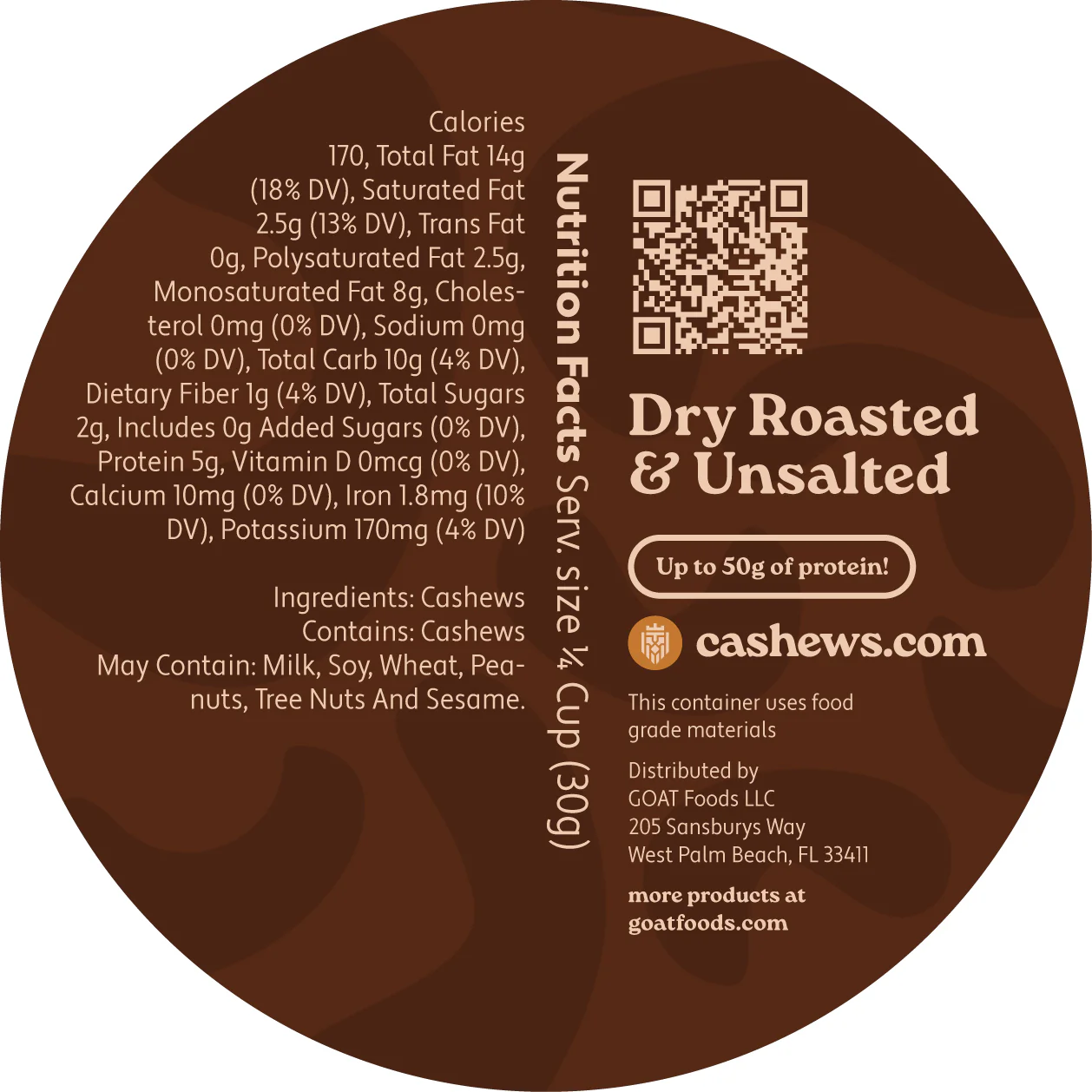 Straight up, no salt. Cashews are the main (and only) character here. Our pure, premium cashews are roasted to perfection with no added salt. Great for healthy snacking, cooking, and baking.